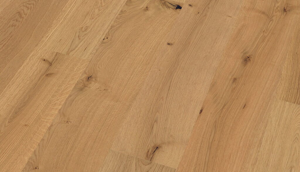 Trojvrstvové drevené parkety z precízne triedeného európskeho dubu s vysoko-odolnou povrchovou úpravou.