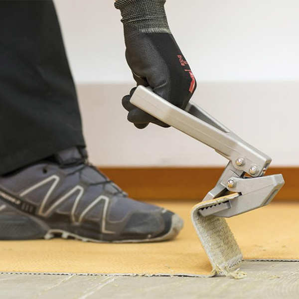Potiahnutím za ergonomickú rukoväť sa podlahová krytina upne do ozubeného upínacieho zariadenia.