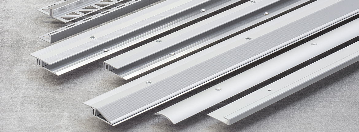 Ukončovacie profily– umožňujú atraktívne a estetické ukončenie podlahy pri stenách, dverách,terasových dverách, francúzskych oknách a pod. Môžu sa použiť namiesto soklových líšt na ukončenie okrajových oblastí podláh pri stene. Sú dostupné vo viacerých prevedeniach s rôznymi spôsobmi montáže.